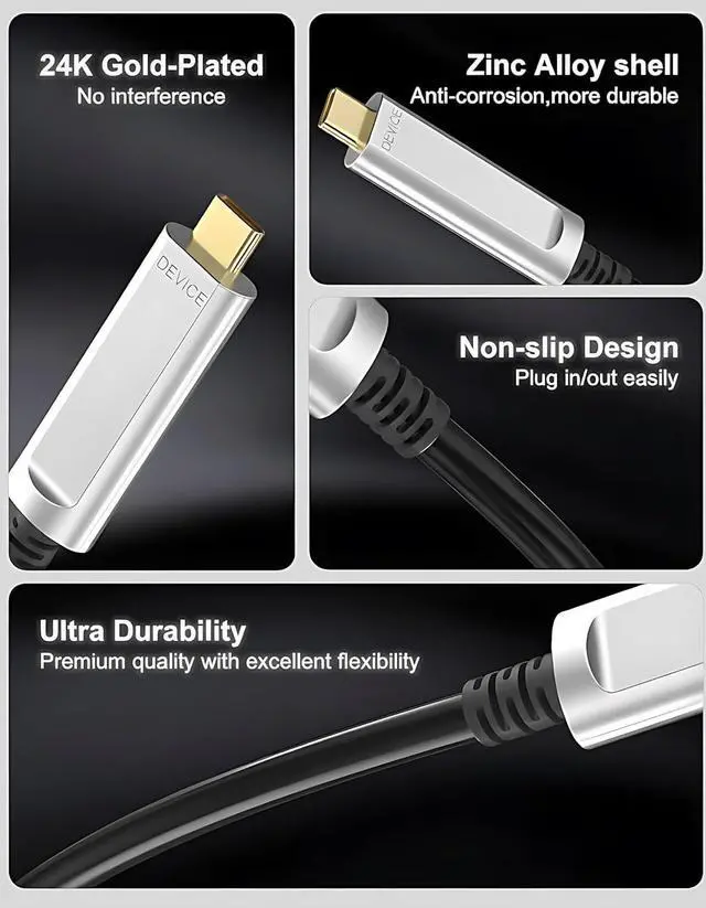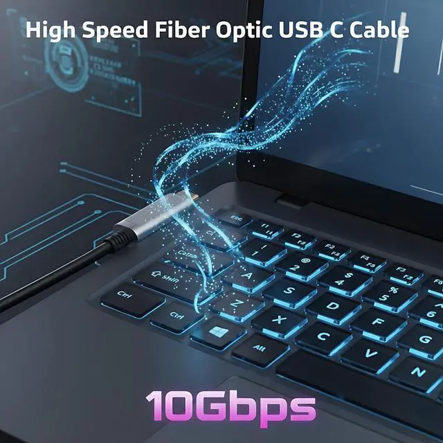 10Gbps Fiber Optic USBC for Flawless Meetings This active optical USB C to USB C cable uses a premium conversion chipset and fiber core to deliver up to 10 Gbps USB 3.2 Gen 2 data over long runs, helping you run smooth Zoom / Teams meetings, 4K video calls and live presentations with stable signal across conference rooms and offices.