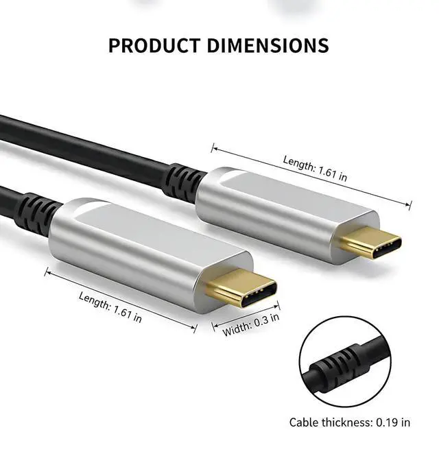 Built Tough for Professional Use A slim, lightweight hybrid fibercopper design combined with a Kevlarreinforced core, zincalloy connector shells and 24K goldplated contacts provides excellent durability, heat dissipation and EMI shielding, making this USBC fiber cable ideal for longterm use in business conference rooms, control rooms and industrial environments.