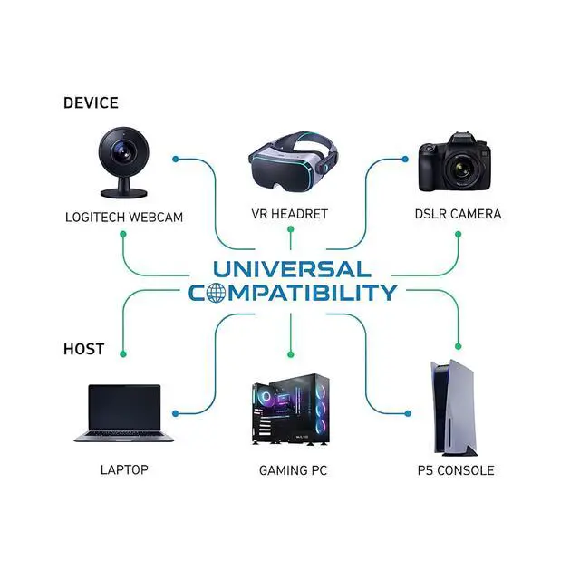 Directional, LongRun USBC Connection The cable features a unidirectional design clearly marked Host Device: connect the Host end to your PC, laptop or mini PC, and the Device end to your USBC conference webcam, 4K camera, VR/AR headset or game controller for best performance; avoid excessive bending to maintain optimal signal integrity.