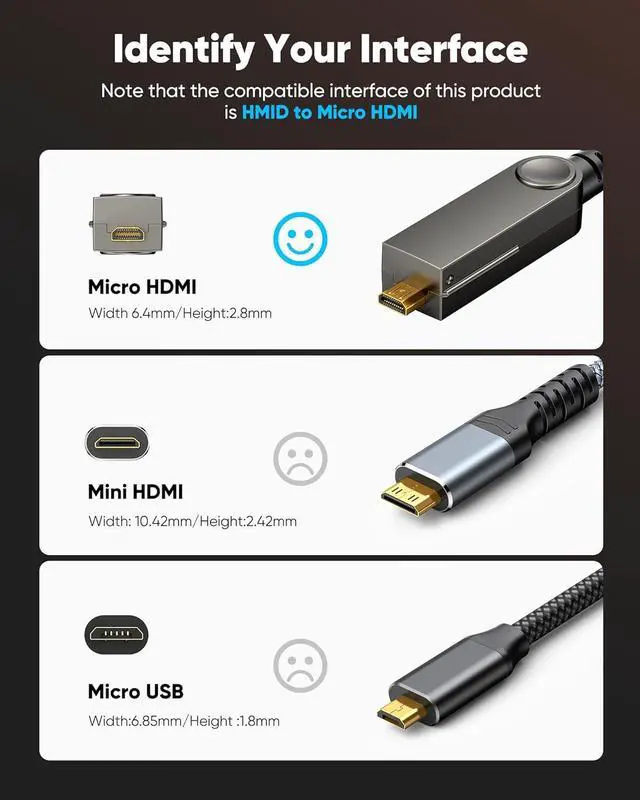 Note: This is Micro HDMI to HDMI, NOT Micro USB to HDMI. So it does not work with Samsung Galaxy S3 S4 S5 S7 or Kindle tablet without Micro HDMI Port.This micro hdmi cord cannot fit for Hero7 Silver & White (Without Micro HDMI Port)