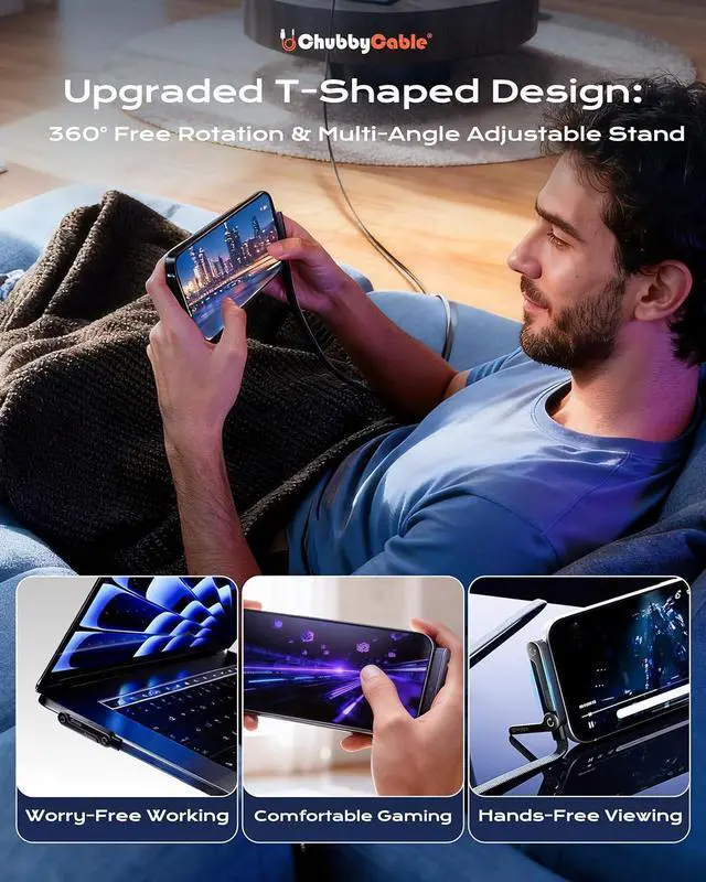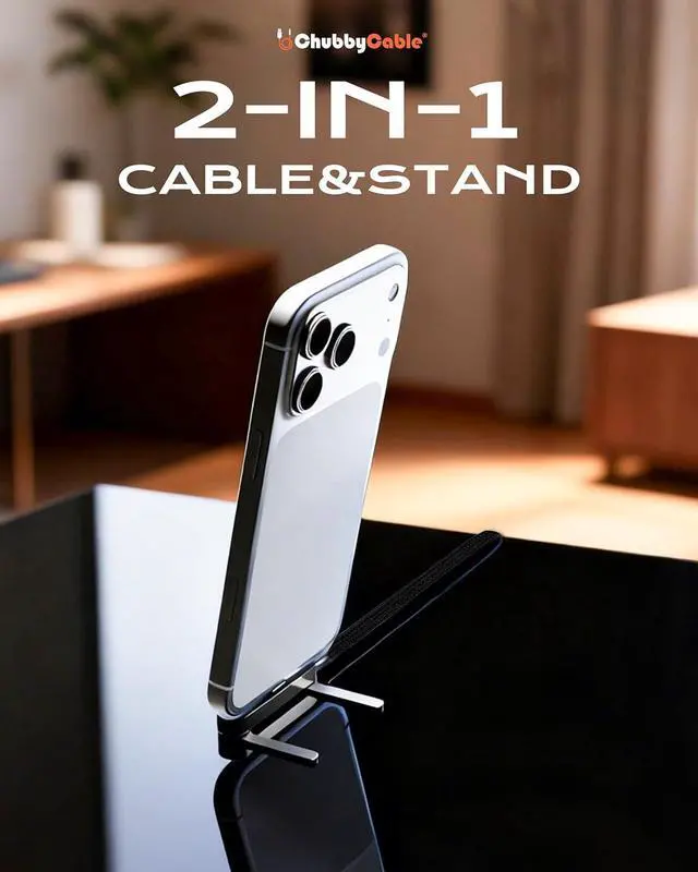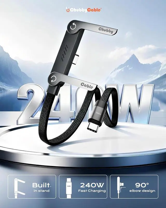 Experience next-level charging with hands-free easethis ChubbyCable StandLite 240W cable delivers ultra-fast power and 480 Mbps data transfer for all USB-C devices. Made of premium braided nylon and zinc-aluminum alloy, its soft yet durable. Its built-in T-shaped foldable stand props devices for streaming/calls, no extra stands needed. With over-voltage/over-current protection for safe, stable charging, its sleek, tangle-resistant, and blends function with style for home, office, or on-the-go use.