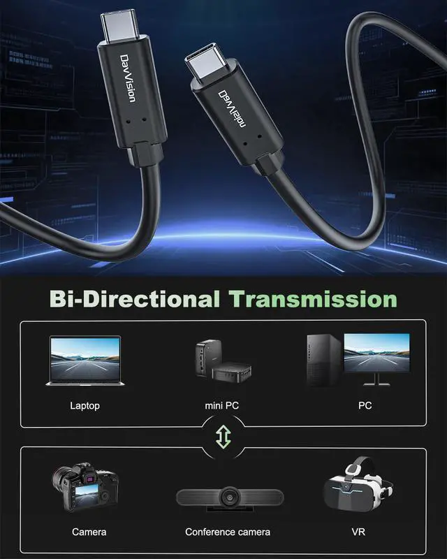 Unique Bi-Directional Transmission: Unlike traditional fiber optic USB-C cables that require fixed Host-to-Device direction, DavVision upgraded fiber optic USB cable supports true bi-directional transmission. Plug either end into your PC,camera,webcam, VR headset, or game console without worrying about orientation. Backward compatible with USB 3.0 and 2.0 for broader connectivity.