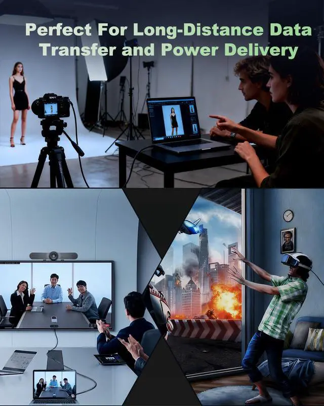Multi-Layer Shielding & Hub-Free: Each fiber cable inside is individually shielded with aluminum foil, and the overall cable is wrapped in an additional shielding layer,ensuring clear, lossless transmission.Without hub chip limitations for hub/docking connection. Perfect for tethered shooting and syncing with VR headsets, webcam and laptops.Please note, all the fiber optic cable is not compatible with Thunderbolt devices.