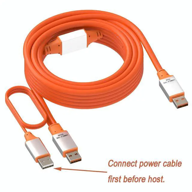 Integrated Power Cable at Device EndFor cables 15 feet/5 Meter and above: Equipped with a dedicated 2.5ft(0.8M) USB 2.0 A Male power cable integrated at the DEVICE end. Connect to any wall charger, power bank, or USB power source near your peripheral device to ensure stable performance and maintain full 10Gbps speed over extended distances. Shorter cables operate reliably without external power.