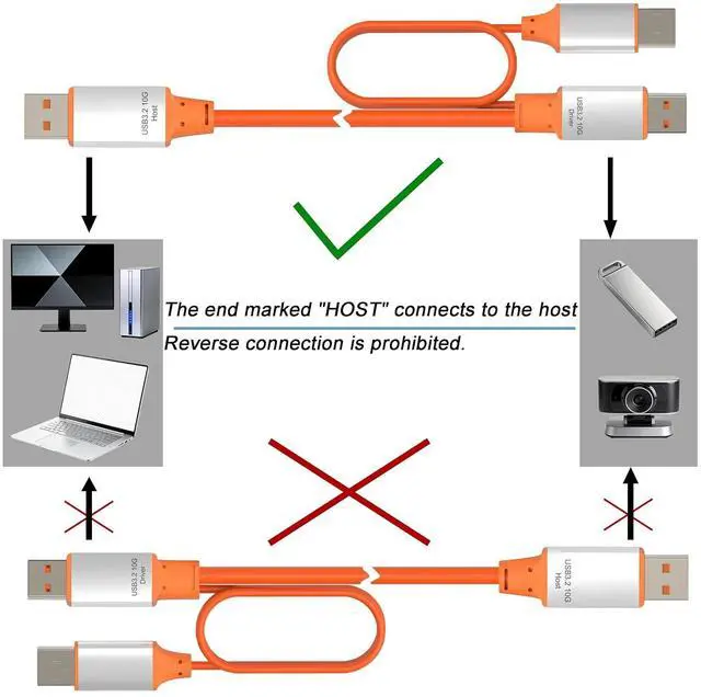 Clear Host/Device Orientation Clearly marked HOST and DEVICE ends ensure proper connection orientation. The vibrant orange cable with integrated power cable allows for easy identification and correct setup between computers and peripherals. NoteConnect power cable first before host.