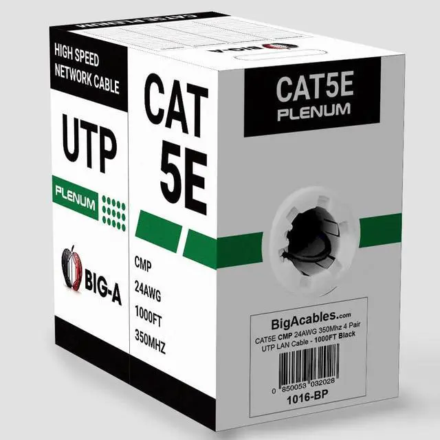 High-Quality Cat 5e Plenum Cable 1000ft Blue CMP-rated Ethernet cable with 350MHz bandwidth, designed for fast and stable data transmission in homes and businesses.