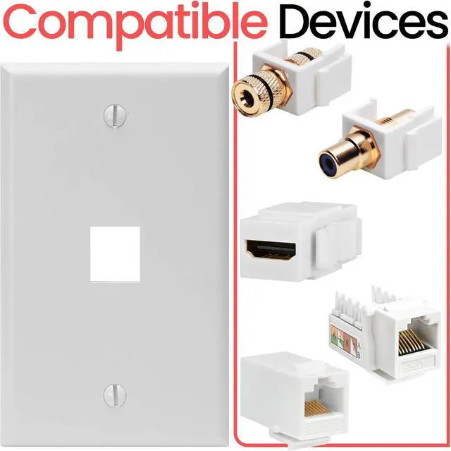 1 Port Keystone Wall Plate Included Standard 1-gang wall plate compatible with Ethernet Keystone Jack and HDMI Keystone for a professional and clean setup.