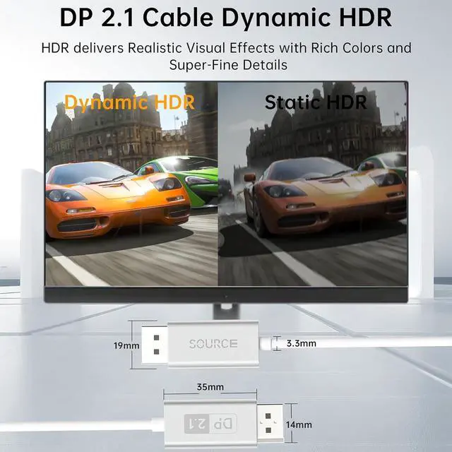 Ultra High SpeedHDMI cable supports 48Gbps data transmission, DisplayPort Cable 2.1 supports 40Gbps data transmission, and the video will no longer stutter or lose frames. Create high-definition and stable 3D stereo image transmission. The latest high bitrate audio formats, including DTS Master/DTS:X/Atoms/HDCP2.3 and Enhanced Audio Return Channel (eARC)).