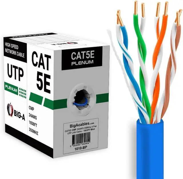 High-Quality Cat 5e Plenum Cable 1000ft Blue CMP-rated Ethernet cable with 350MHz bandwidth, designed for fast and stable data transmission in homes and businesses.