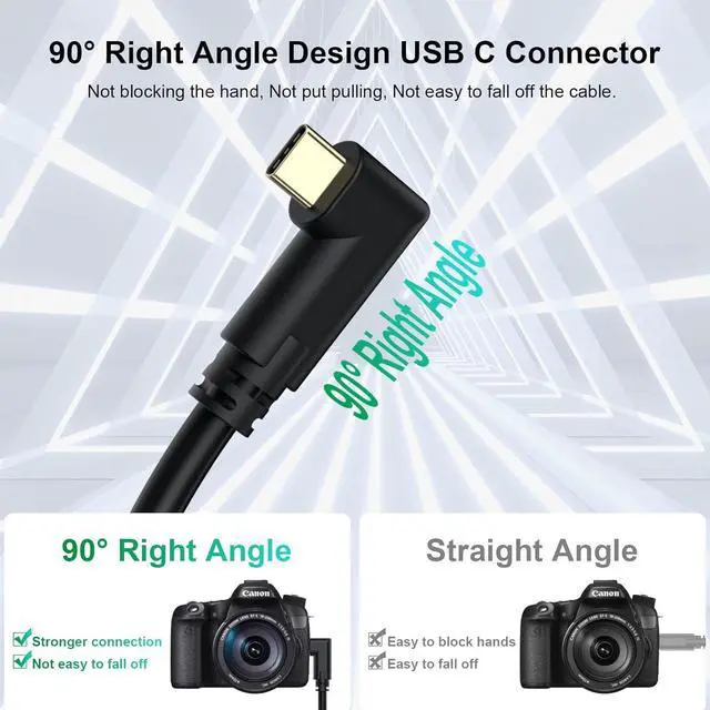 COOYA Camera Tethering Cable Dual USB C + USB C 90° Right Angle Cord 5Gbps Fast Transfer & Connection Between Camera and Computer for Sony A7 IV/III, A7R IV, A7C2, Canon R10 R8 R6 R5 Nikon Z9 Z8 Z7