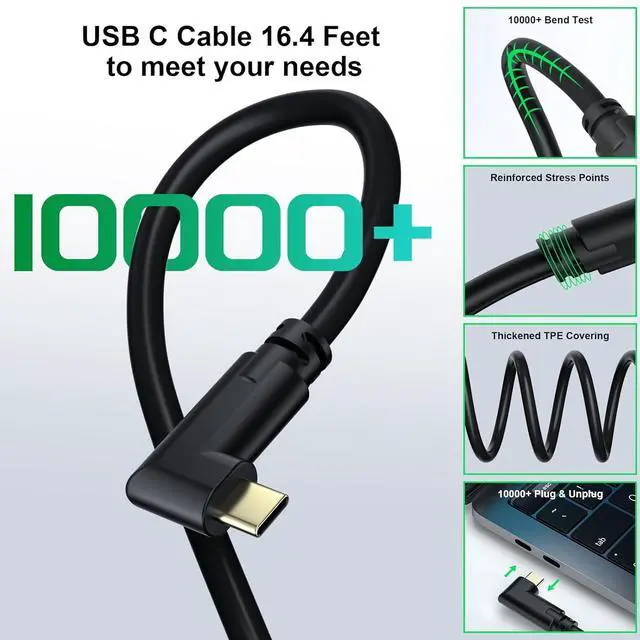 COOYA Camera Tethering Cable Dual USB C + USB C 90° Right Angle Cord 5Gbps Fast Transfer & Connection Between Camera and Computer for Sony A7 IV/III, A7R IV, A7C2, Canon R10 R8 R6 R5 Nikon Z9 Z8 Z7, 16.4ft