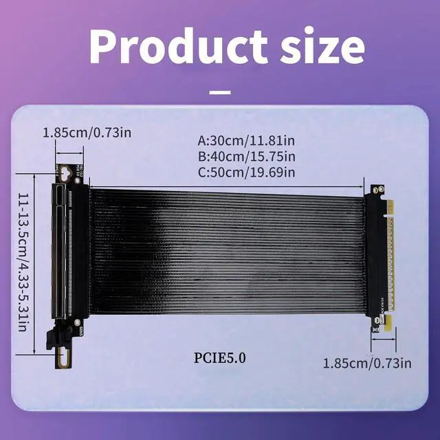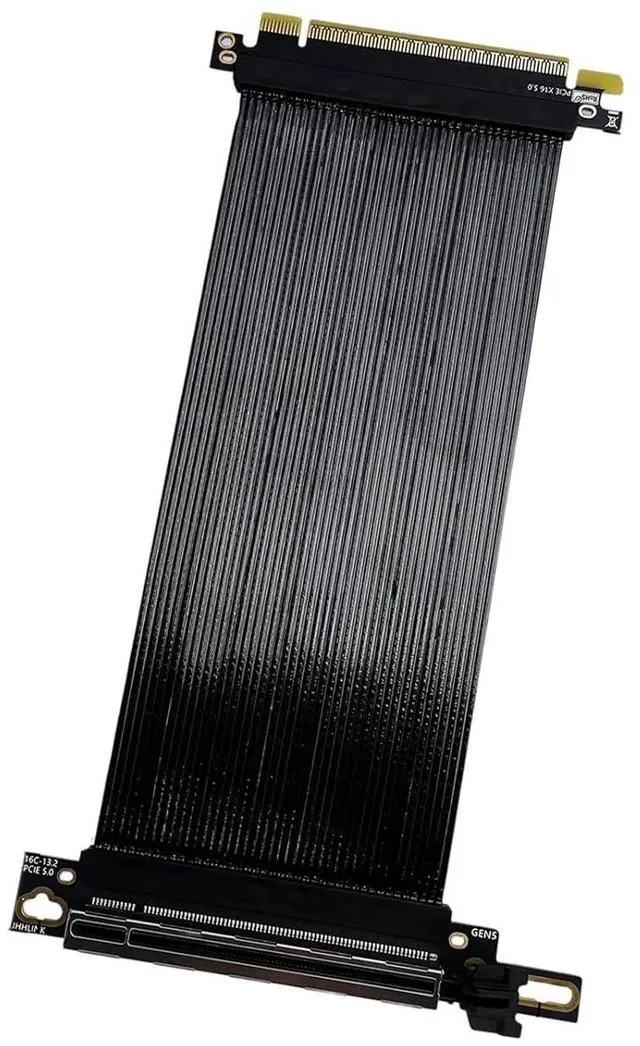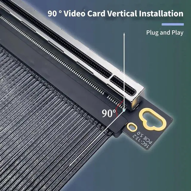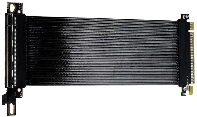 Explosion fast data transfer using PCIE 5.0 X16 extension cable, 90 degree high angle capability for GPU vertical mount and 0.9mm flat cable to optimised PC case space