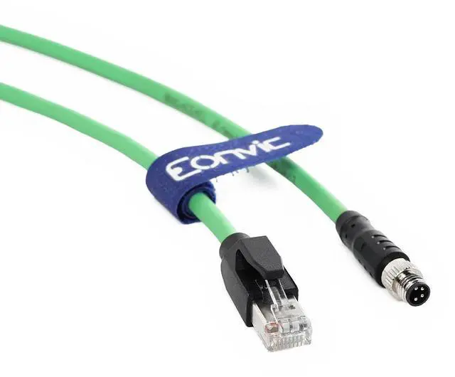 Connector A: M8 A code 4pin male. Connector B: RJ45 Male. Cable length: 10M (customizable length supported).