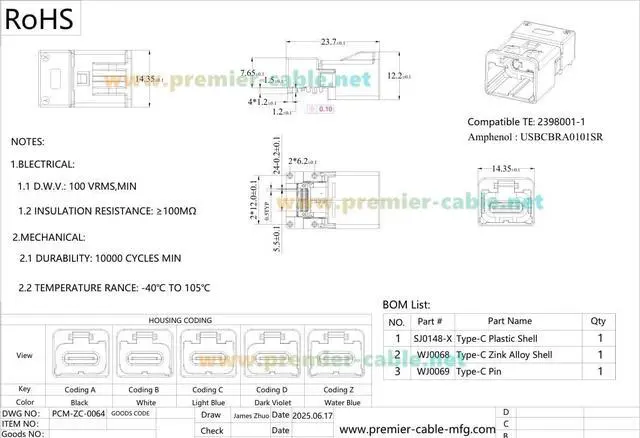 Automotive-Grade Adapter The USB 3.1 Type-C Data Connectivity Header, Compatible with TE Connectivity 2398001-1 and Amphenol Mini HSBridge PCB Connector USBCBRA0101SR.