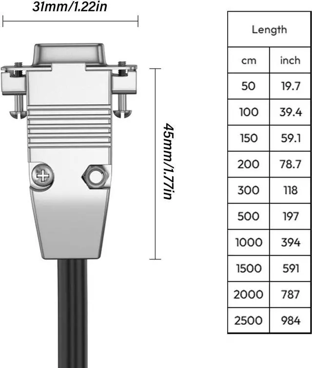 9Pin port cable, 9pin RS232 direct data cord, with 11 different lengths ranging from 0.5m-30m to choose from, plug and play.