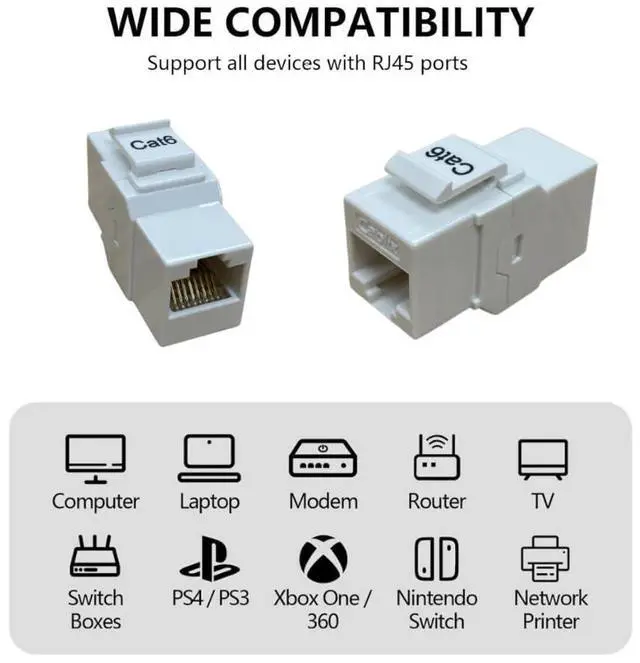 Standard RJ45 Connection Works seamlessly with patch cables, wall plates, keystone jacks, and network devices to extend cable runs or simplify installations.
