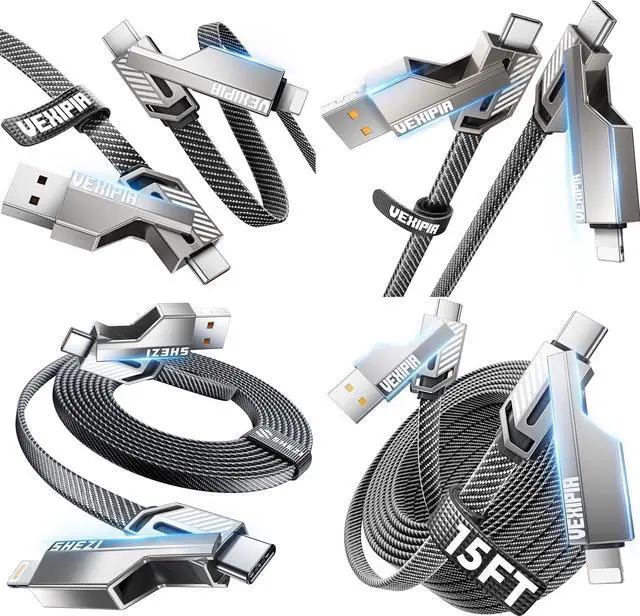 60W High-Speed Charging: Our 15 ft multi-charging cable is equipped with 60W charging power, allowing you to get the power required for one day in 35 minutes. Note: To achieve 60w fast charging, please be equipped with a charging adapter of more than 60W