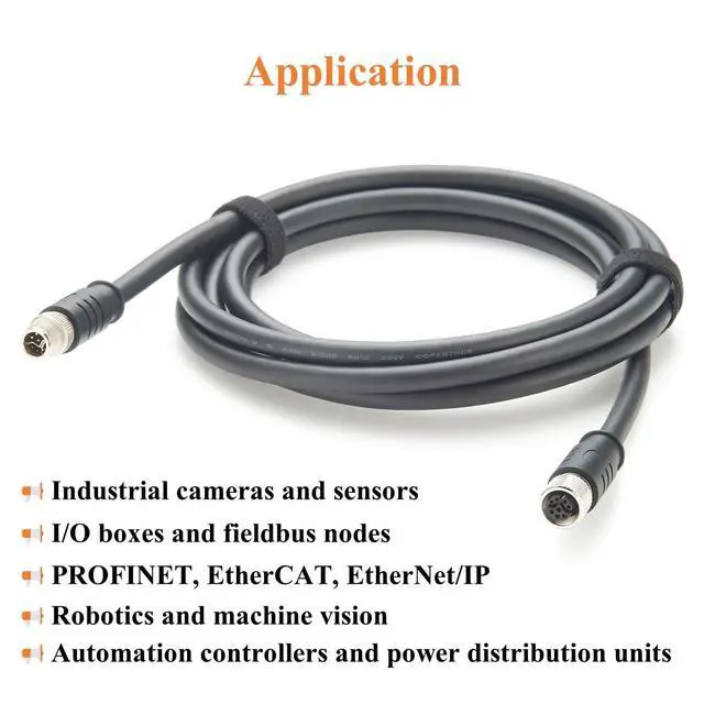 Application M12 Data Power Combo Cable for Industrial Cameras, PROFINET, EtherCAT, Fieldbus, EtherNet/IP, I/O boxes, Sensor, Robotics, Machine Vision and Automation Controls.