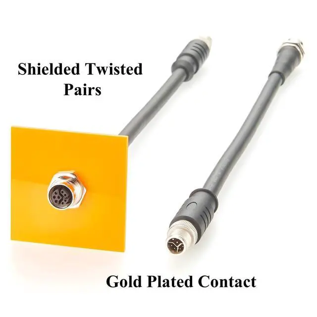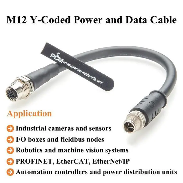 Application M12 Data Power Combo Cable for Industrial Cameras, PROFINET, EtherCAT, Fieldbus, EtherNet/IP, I/O boxes, Sensor, Robotics, Machine Vision and Automation Controls.
