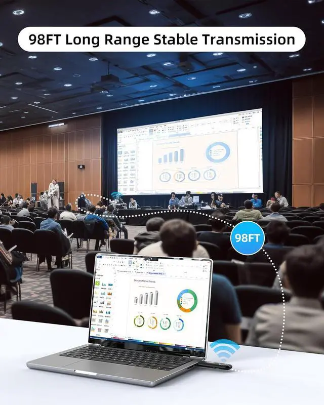 Wireless Screen Mirroring and Extension Modes Wireless HDMI Transmitter and Receiver supports screen mirroring and screen extension functions, operate as wireless video and audio transmitter and receiver, allows you to streaming on TV, projector and monitors from laptop, PC or computer