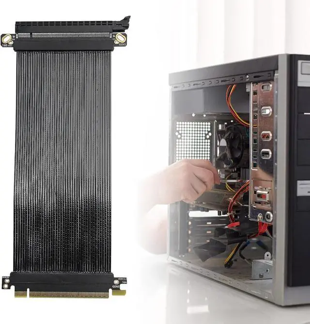 The PCIE5.0 Risers Cable's innovative design includes shielded slots for easy vertical GPU installation, reducing signals interferences and maximizing your motherboards connection efficiency.