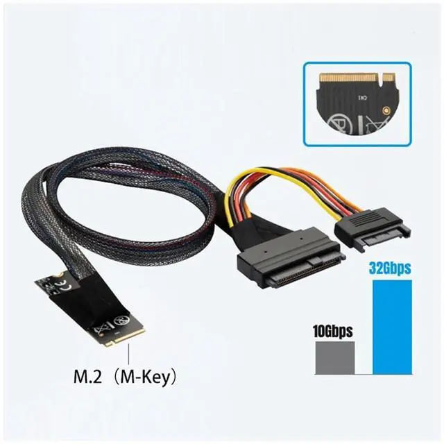 1. This M.2 to U.2 adapter card can convert the M.2 interface on the motherboard into a standard U.2 (SFF-8639) interface, and supply power through the 15 pin SATA power interface, which can ensure fast and stable data transmission . Drive-free, pl-ug and play.