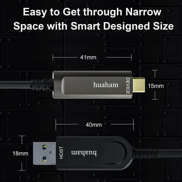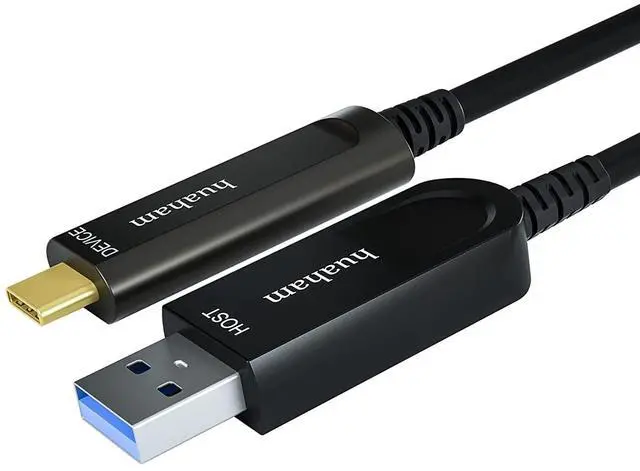 10Gbps Fiber Optic USB 3.2 Cablehuaham USB A to C fiber optic adopts advanced photoelectric conversion technology, USB 3.2 Gen 2 technology supports 10Gbps, ensuring zero delay, zero data loss and electromagnetic interference. Fiber optic is softer, faster, lighter, and has better EMI/EMC (anti-electromagnetic interference) technology.