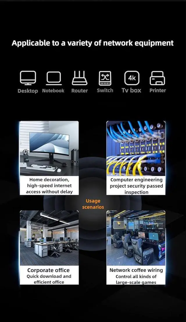 The Ethernet cables are ideal for a variety of networking applications, from home or office network installations to routers, printers, VoIP phones, IP cameras, game consoles, Ethernet extenders, switch boxes, PoE devices, routers, and more. The cable is designed for Cat6A in-wall applications such as distributed data, voice and digital video in 10 Gigabit Ethernet networks. Fast transmission and superior signal quality, this cable ensures peak performance over local area networks.