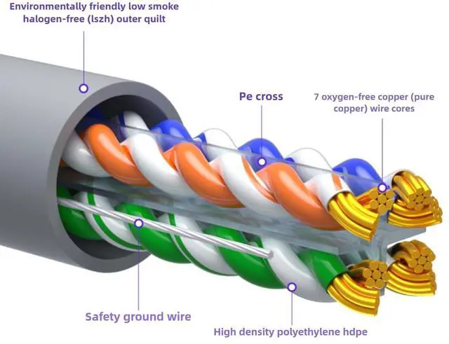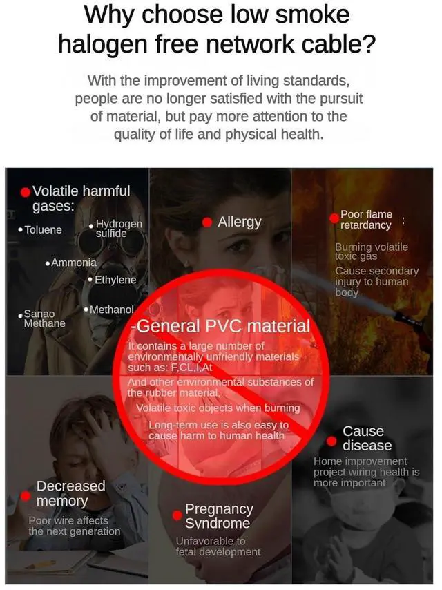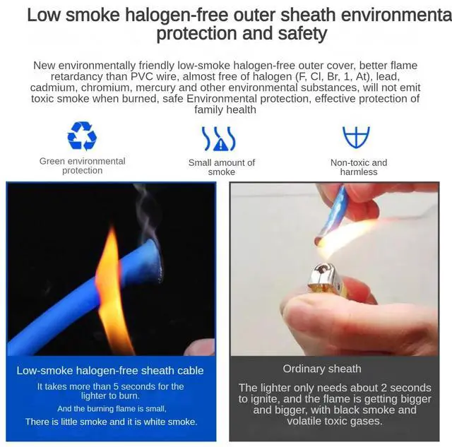 [LSZH] New environmentally friendly low-smoke halogen-free outer cover, better flameretardancy than PVC wire, almost free of halogen (F, Cl. Br. 1. At. lead.cadmium, chromium, mercury and other environmental substances, will not emittoxic smoke when burned, safe Environmental protection, effective protection ofamily health