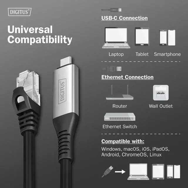 Wide Compatibility with MacOS and Windows - Works seamlessly with all USB-C enabled laptops, tablets and smartphones that don't have their own LAN connection