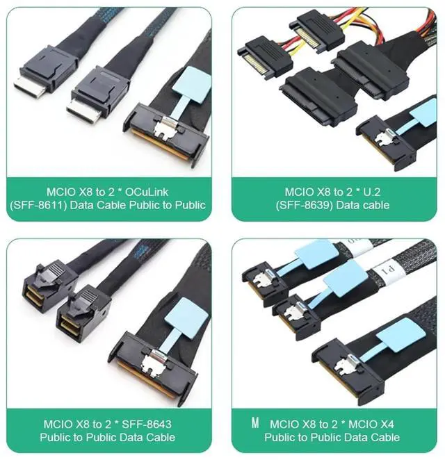 4. Future-Proof Connectivity: Featuring MCIO X4 (38pin) and MCIO X8 (74pin) connectors, the slimline x8 to 8*sata cord is an ideal choice for current and future differential signal and sideband signal transmission needs.