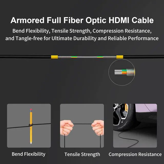 1Full Fiber Transmission2Enhanced Anti-EMI Fiber3Full Optical Fiber HDMI1Stainless Steel Armored2Structure Comparison1Home Theater2Conference Hall3Design Studio4Event Venue5Medical Facility 8K Detachable HDMI