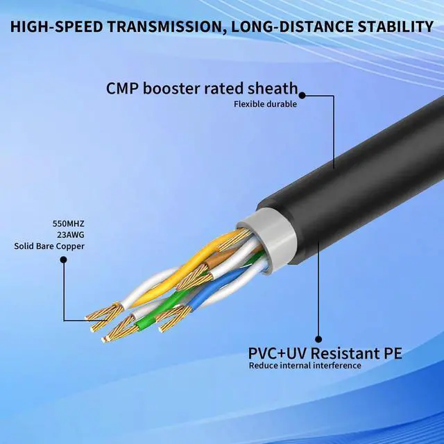 Durable and Weatherproof: The centropower cat6a cable boasts a UV resistant jacket that can withstand sunlight, rain, snow and various harsh environments