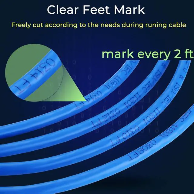 Every 2ft Marker: Cat 6 cable 1000ft marked with every 2 feet length starting at 1000 feet and decreases with use. Cat 6e ethernet cable 1000ft is of handy feature for measuring, without worrying about whether run out of cat 6 ethernet or not.