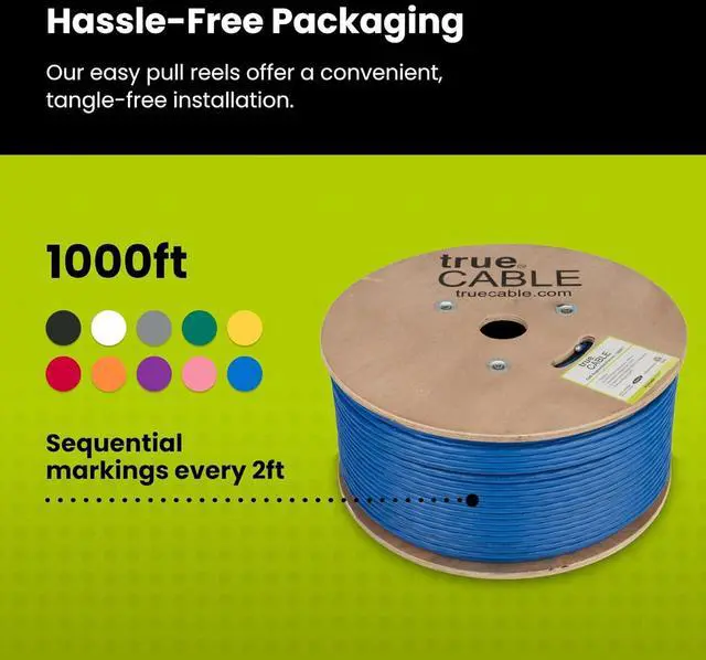 [Easy to use] Comes pre-spooled on a tangle free, easy pull reel (1000ft) so you dont have to worry about getting behind on your next job. Footage markings every 2 feet improve efficiency and easily allow you to track how much cable is left.