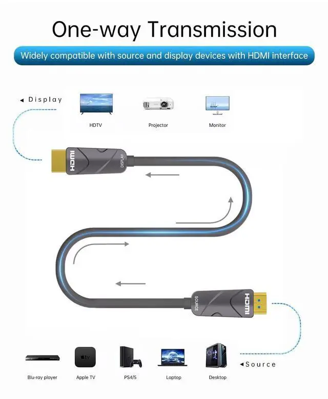 Strictly quality control: This fiber optic HDMI cable were passed serious reliability and performance test, we can guaranty a good quality for you. Any questions for this cable, please don't hesitate to contact us.