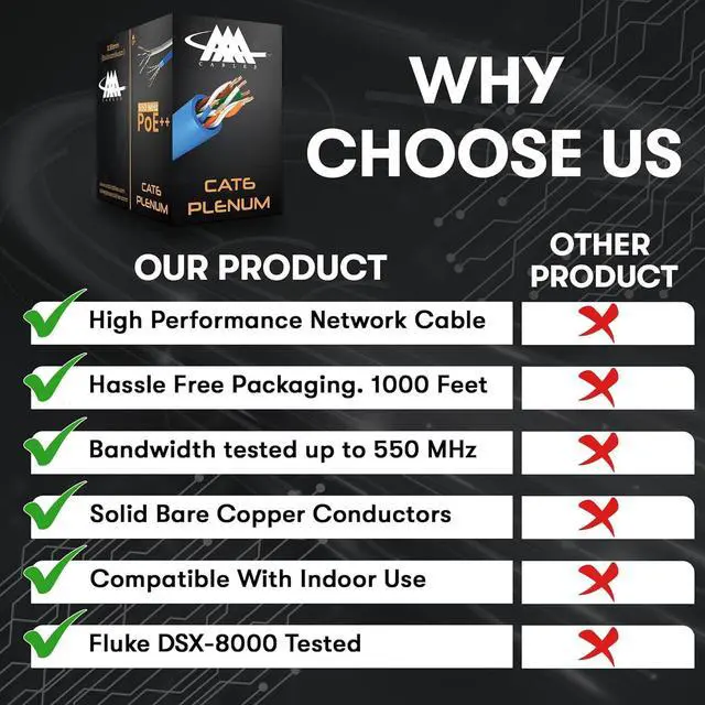 Versatile & Reliable: Whether setting up a home network, a commercial enterprise, or requiring high-temperature resilience with our plenum-rated cables, we've got you covered.