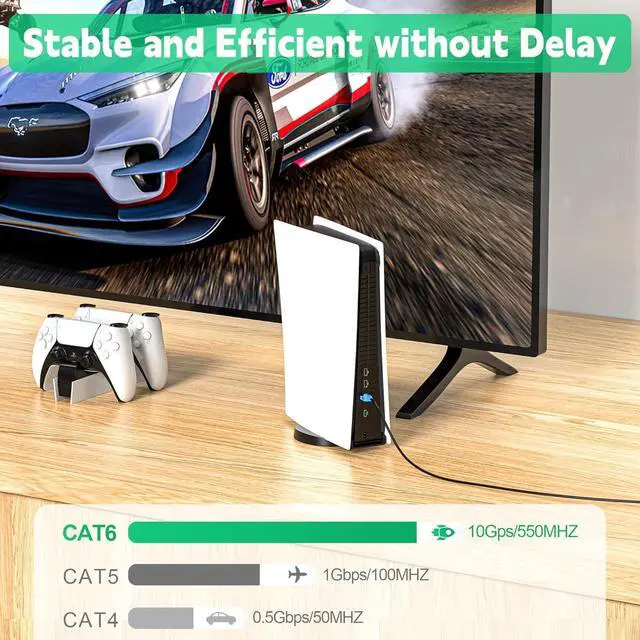 Wide Array of Applications: Compatible with office, gaming and home devices. Backward compatible with Cat5e and Cat5. Compatible with PlayStation 3, PS4, PS5, Xbox, network adapter, hub, router, modem, etc. Provide you with the ultimate data, audio and video experience