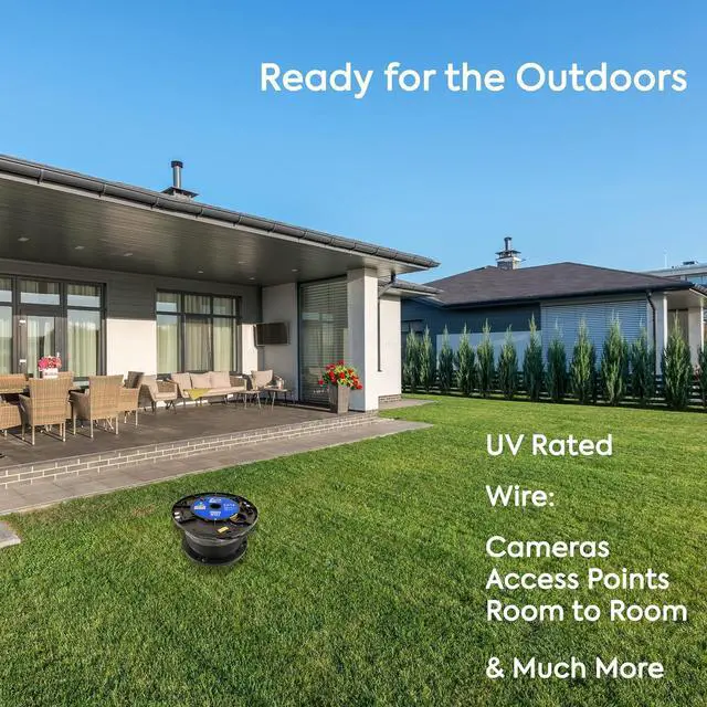 UV and CMR | Our Cat8 outdoor cable durable construction is UV resistant for outdoor use and CMR rated for in-wall installation, ensuring longevity and reliability.