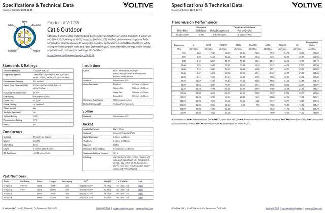 CAT 6 NETWORK CABLE. 23 gauge, 4 pair, solid copper conductors w/ spline, unshielded (UTP). 1, 2.5, and 5 Gigabit speeds up to 328ft, 10 Gigabit up to 180ft. ETL Verified. Tested to 600MHz. PoE, PoE+, & 4PPoE/PoE++.