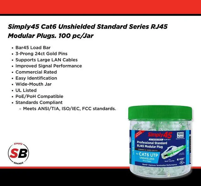 Commercial Rated - These RJ45 mod plugs are UL94 V0 (IEC 60695-11-10) rated for all commercial installations. These RJ45 mod plugs are recommended for CMP Plenum, CMR, CM; and LSZH up to B2ca-rated LAN cables.