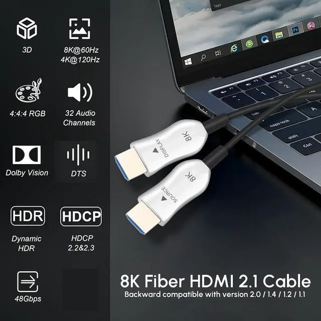 Easy to Use -- Plug and play, no extra power supply. High speed 8k fiber hdmi 2.1 cable can be used in a variety of applications such as home theater systems, gaming consoles, audio equipment, as well as conference rooms and commercial venues.