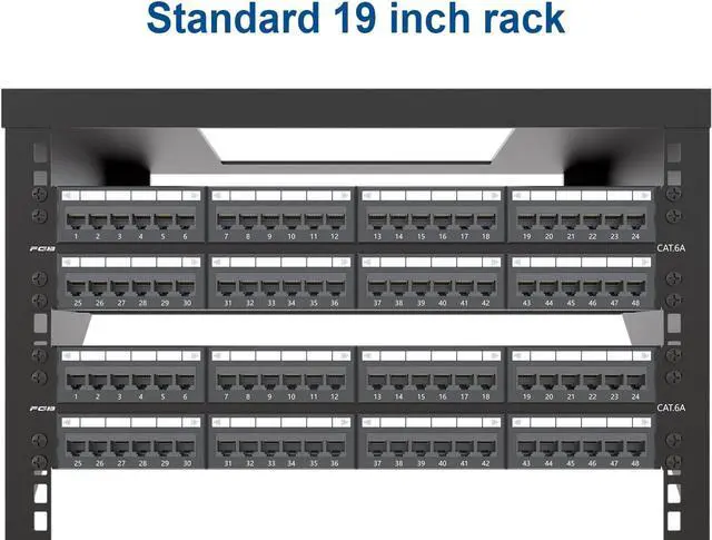 Reliable Gigabit Performance: Supports transmission rates of up to 10Gbps, with Cat6A standards delivering up to 500 MHz bandwidth. Fully backward compatible with Cat6, Cat5e, and Cat5 cables, this patch panel ensures optimal performance for your network