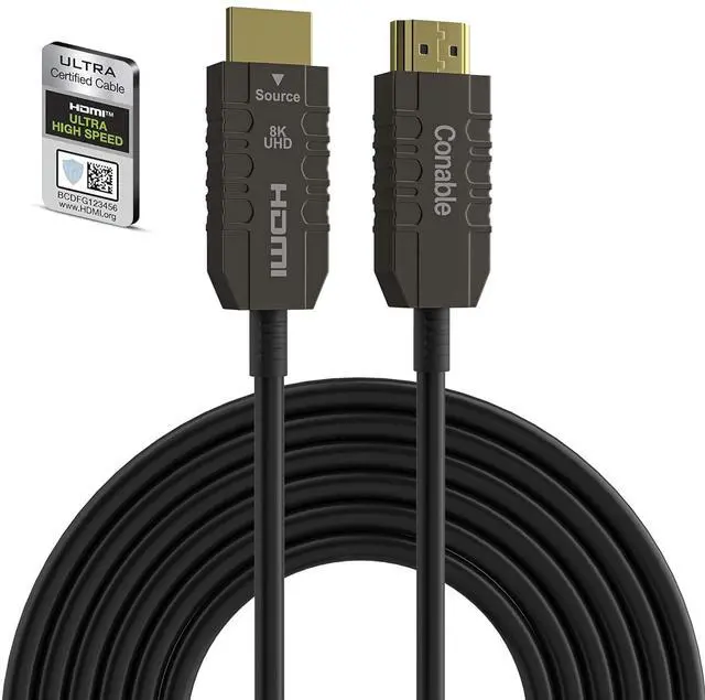 Certified 8K Fiber Optic Cable: 100% genuine 8K fiber optic HDMI certified cable, officially passed the strict test from HDMI Forum to ensure this HDMI cable wont mess up by other wireless devices. Note: this is a uni-directional 8K HDMI fiber optic cable with clear installation direction: with "Source" plug for HDMI out, with "Display" plug for HDMI input.