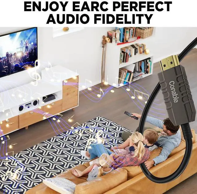 Top Technology-Super High Speed: Conable HDMI 8K fiber optic certified cable supports 48Gbps ultra high speed bandwidth and resolution up to 7680 x 4320, refresh rate up to 8K@60Hz, 4K@120Hz, 2K@144Hz. Perfectly compatible with latest features Dynamic HDR, HDCP 2.2 , 2.3, DTS:X, Dolby Atmos, Dolby Vision, enhanced Audio Return Channel(eARC), Variable Refresh Rate (VRR), Auto Low Latency Mode (ALLM), Quick Media Switching (QMS) and Quick Frame Transport (QFT).