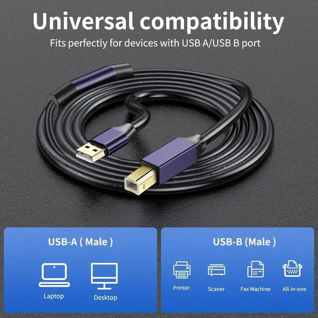 USB 2.0 Printer Cable: USB 2.0 printer cable is ideal for connecting the scanner, printer, server, hard drive,camera and other USB Type B devices to laptop, computer (Mac/PC) or other USB-enabled device for data transfer
