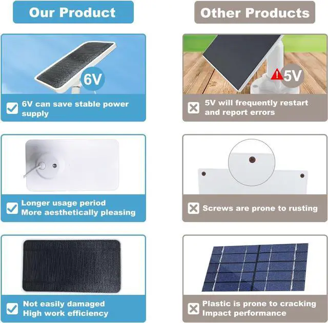 Optimized for the Arlo Essential/2KFor this arlo essential solar panel,we choose high-quality monocrystalline silicon and lightweight ETFE material and optimize the power for the solar panel for arlo essential 2k,just like the Essential solar panel(VMA3600) from Arlo,ensuring the longest battery life for your camera. The 13-foot long charging cable and multifunctional 360°adjustable rustless bracket make your setup more flexible.Easily and quickly position your device in the optimal place for sunlight exposure