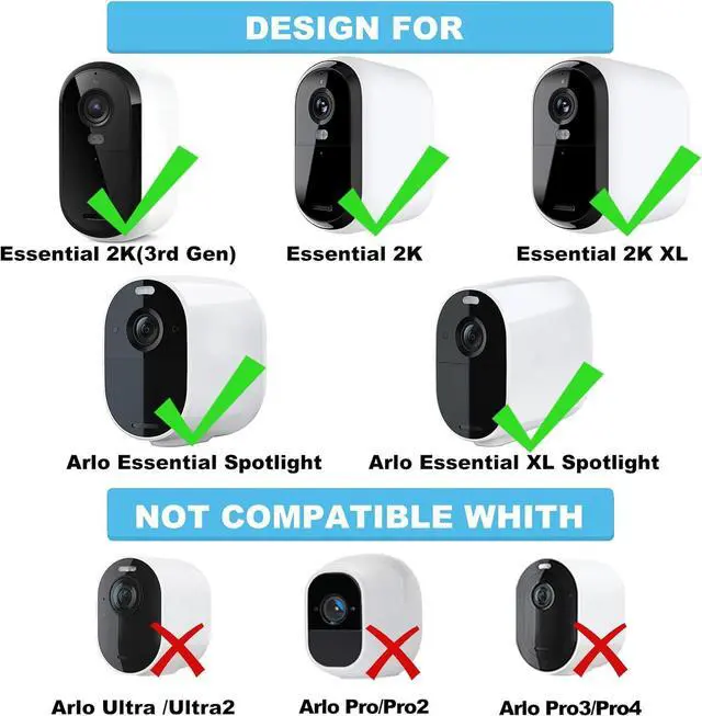 Designed specificallyThis design is for arlo essential solar panel charger,specifically for Arlo Essential camera, Essential Spotlight, Essential XL Spotlight and Essential 2K (2nd generation) ,Essential 2K XL (2nd generation) models, the AYIIFEI essential solar panel charger makes it easy to power your surveillance by eliminating the need to constantly disassemble the camera and manually charge it. Note: This product is not compatible with Pro, Pro 2, Pro 3, Pro 4, Ultra, Ultra 2 and Pro 3 floodlight models. Camera not included