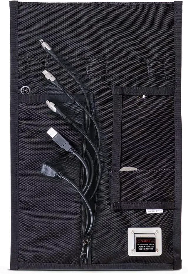 To effectively access and recover data from cell phones, tablets, and similar electronics, the latest forensic tools require devices to stay live. The Mission Darkness Charge & Shield Faraday Bag is designed to keep a device powered while shielded from RF signals. Each bag includes a dual-sided USB filter with an external cable lock, a patented NeoLok closure system for safe use with conductive gloves, two cable sets (universal angle USB A/M to A/M, lightning to USB, micro USB, USB-C, and USB extension), and a carrying case. The window-style bag includes a large transparent shielded window on the front side to view battery life and device status. The unique charging feature prevents lockout mode and reduces the amount of time needed to break a passcode, enabling the maximum amount of data extraction and unlocking with tools like GrayKey, Cellebrite, XRY, BlackBag, Oxygen, etc.