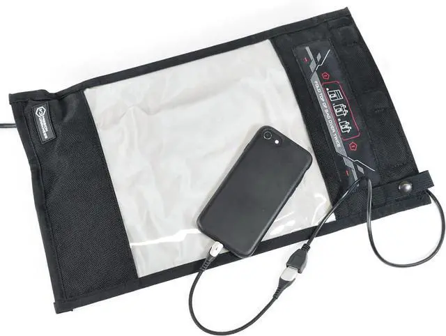 Military-grade faraday bag designed to keep a cell phone, tablet, or similar device powered and shielded from RF signals